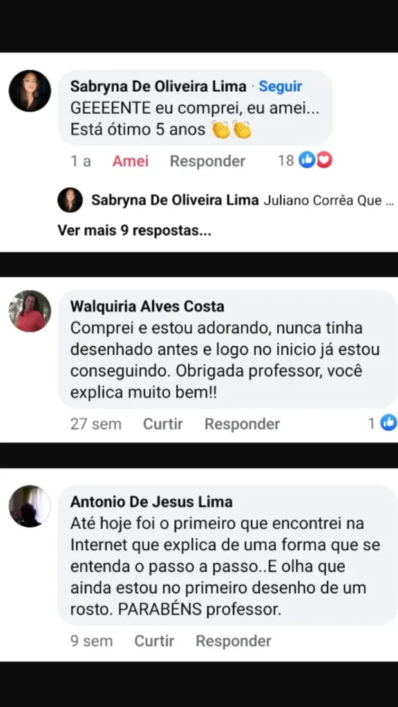 Você vai entender a base do desenho de forma clara, aprender técnicas que trazem resultado rápido e ganhar confiança pra evoluir.